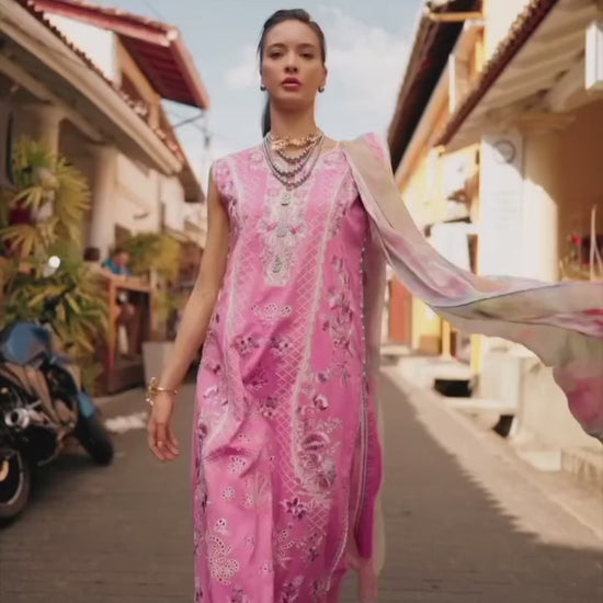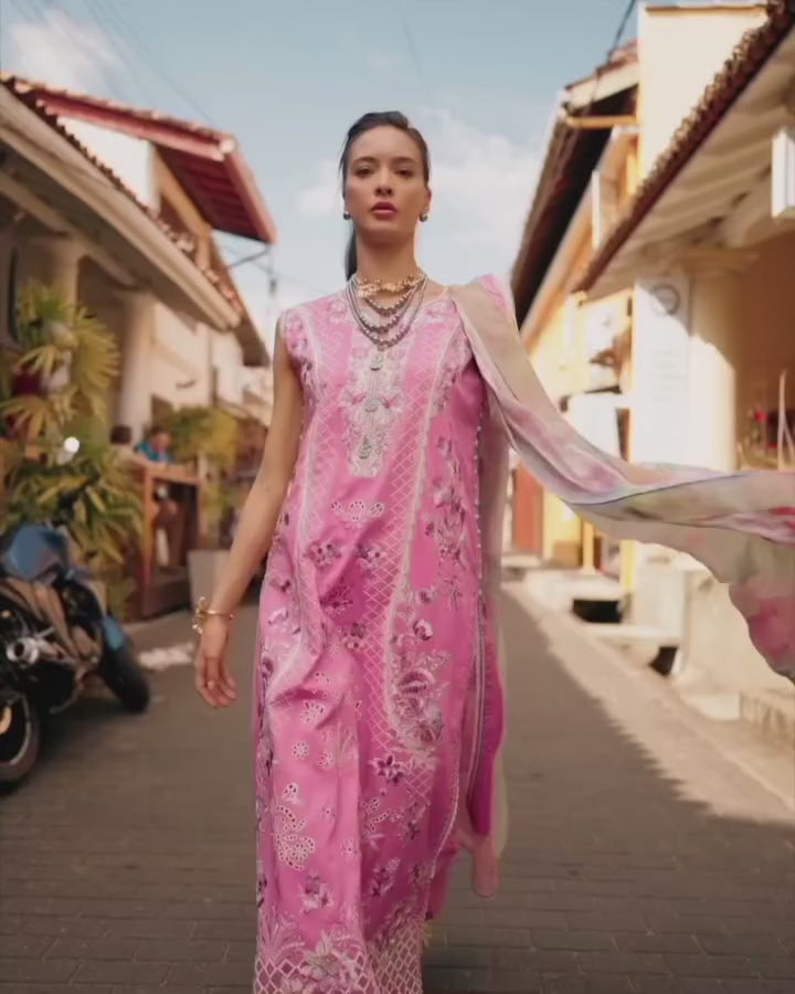Introducing Mushq Manaram Luxury Lawn ’25 – a stunning 3-piece ensemble in a dark pink shade, designed for timeless elegance and comfort.