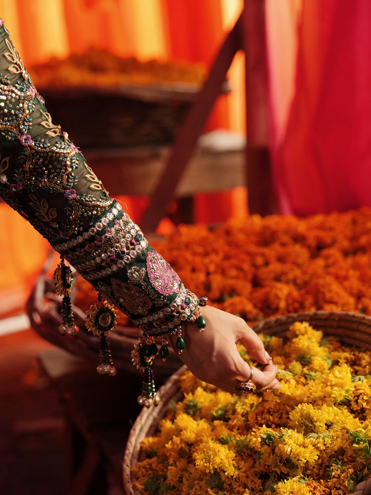 - Embroidered And Hand Embellished Chiffon Sleeves
